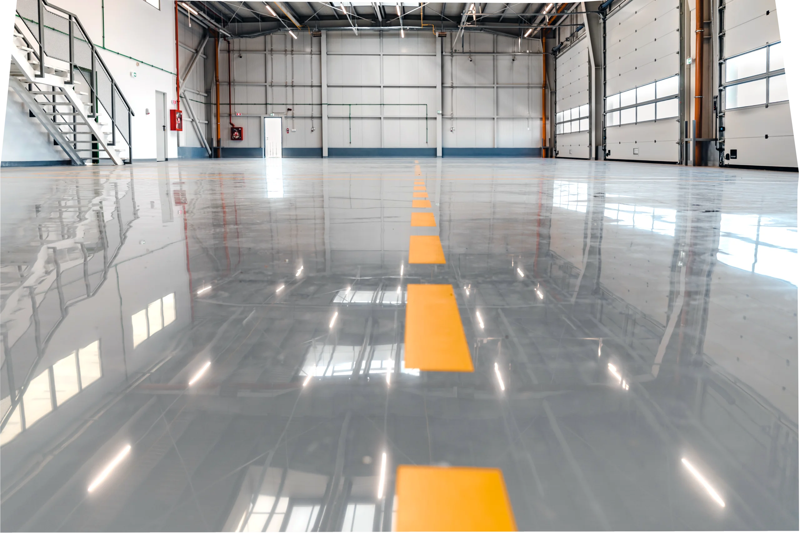 Технология заливки позволяет создать идеально ровную поверхность с антискользящей фактурой, что обеспечивает безопасность обслуживающего персонала. Покрытие легко очищается любым типом уборки, включая мойку под давлением и обработку промышленным пылесосом.